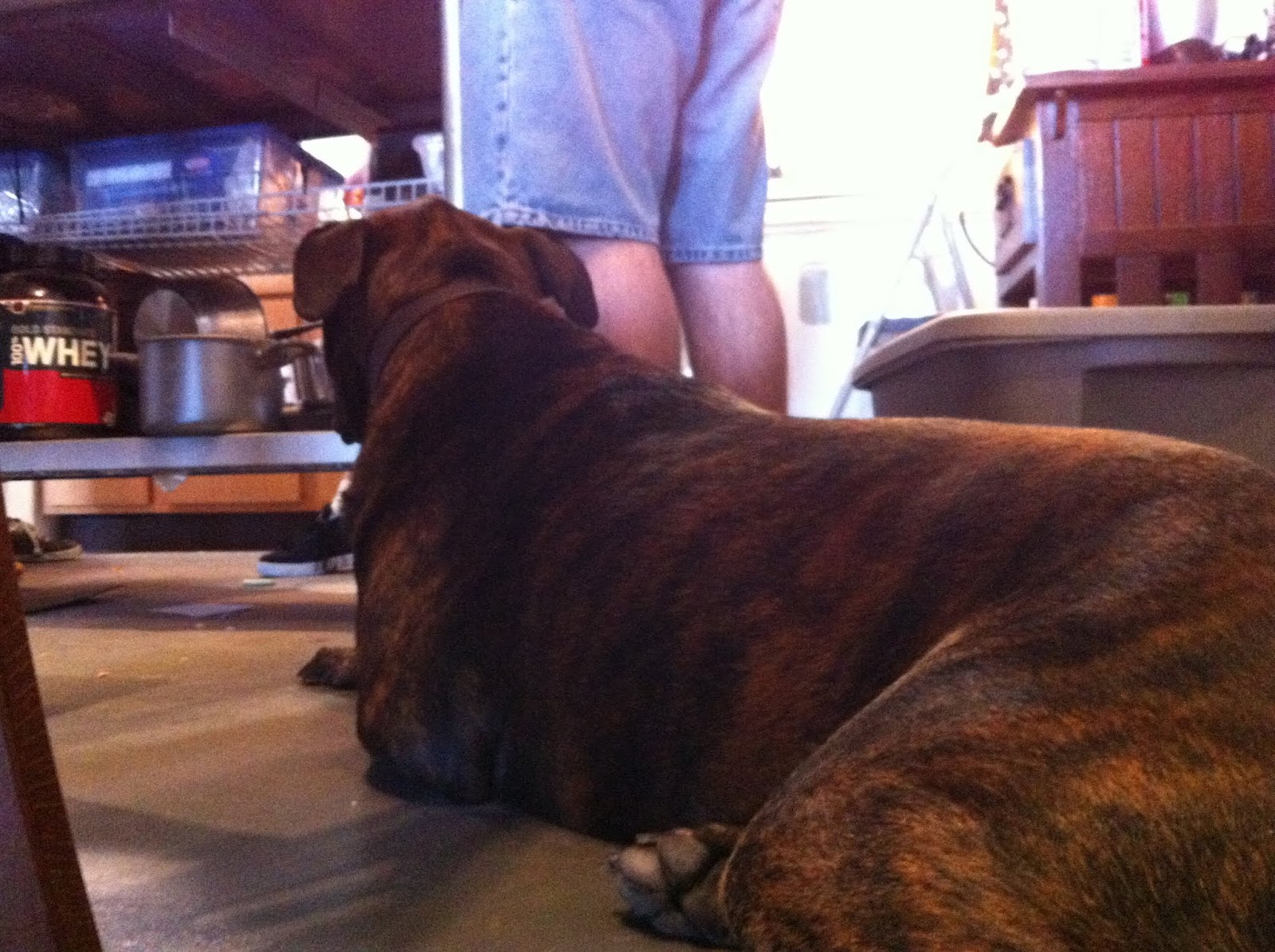 We have to pause these proceedings to go buy sour cream (Strawberry Shortcake requires sour cream, say whaaat?) and to walk Rommy. You remember Rommy, right?