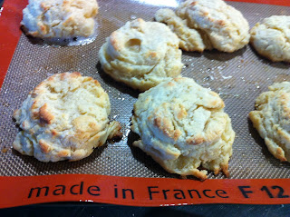 Speaking of chaos, we're all Deeply Concerned about the state of the shortcakes. For some reason, they are swimming in liquid in the oven. Could the butter be leaking out? Does the new silicone mat we are using for the first time have some sort of liquid leaching ability? It was made in France, how can it be evil?