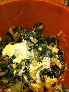 Empanada innards: Alex sauteed some onions, mushrooms and spinach. Then he made a roux, then very slowly added the juices cooked out from the mushroom mixture. To make it tastier, he added ketchup, agave, lemon juice and garlic.