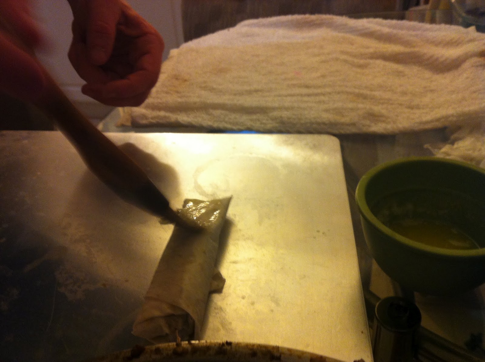 "Should we keep these cigars vegan?" Alex asked me. Who am I kidding, even I said no. The Hunger is upon us. Butter smeared phyllo? Sounds great! On the positive side, I "accidentally" bought whole wheat phyllo dough, earlier. That's got to count for something.