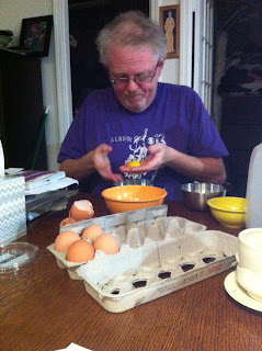Alex here is making biscuits in addition to the English Muffins. Apparently, Jim is afraid the muffins will be crap, so he's got a backup plan, leading SOME people to have a paranoid suspicion that we are actually doing his cooking for the week. But as it turned out... he kind of called that one.