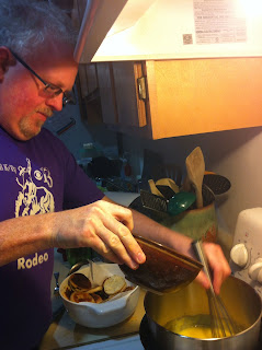 While Jim is separating eggs, Alex tells us about a new method he learned of doing just that; he learned about it on Lifehacker. It involves using a plastic bottle to "slurp" the yolk away from the white part of the egg. Fascinating. I mean, it sounds completely disgusting, don't get me wrong, but it's fascinating, too. I quietly resolve to save the next plastic bottle I come across to test this out.