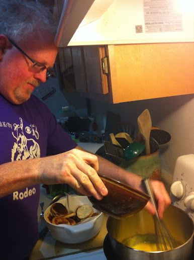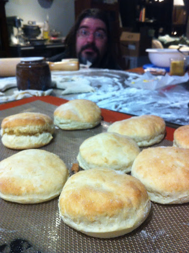 Alex here is making biscuits in addition to the English Muffins. Apparently, Jim is afraid the muffins will be crap, so he's got a backup plan, leading SOME people to have a paranoid suspicion that we are actually doing his cooking for the week. But as it turned out... he kind of called that one.