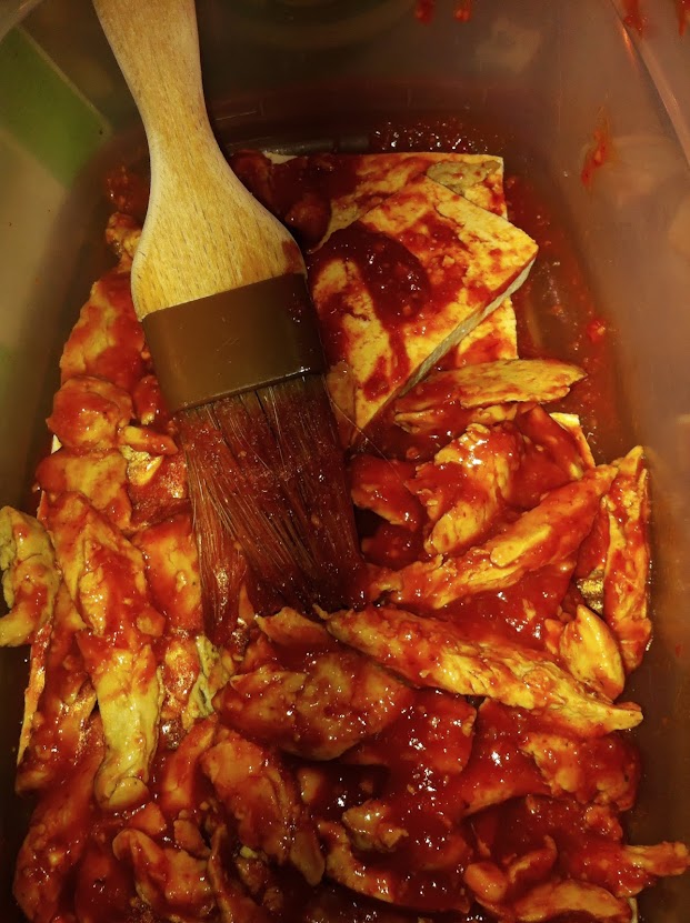 For this meal, we are using Gardein Chicken that The Conscious Cook recommends so highly that we're all sure he has stock in the company, but whatever. That dude's recipes have (almost) never done us wrong. (There was that one blackberry shortbread dessert that we all thought was atrocious, but other than that, he's aces with us.)